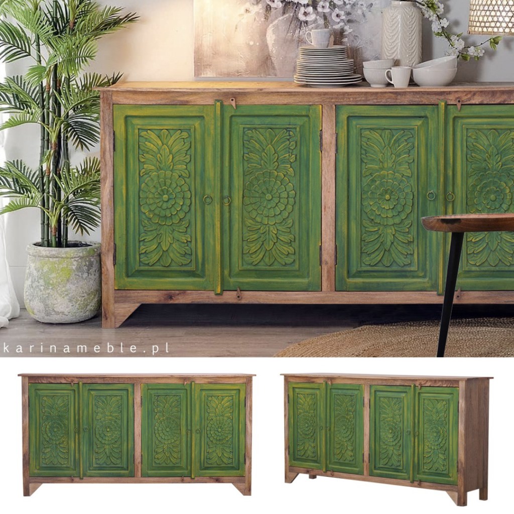 Duża #indyjska #komoda Secret Garden zrobiona jest #ręcznie z #drewna #mango #rzeźbione w #piękne wzory zaczerpnięte z natury. Barwione #drewno i woskowana powierzchnia sprawia ze mebel wyglada jak prawdziwa vintage’owa perełka. To prawdziwa gratka dla wielbicieli stylu boho, #orientalne lub #vintage #meble #indyjskie #drewniane #kolorowe #salon #sypialnia #jadalnia #gabinet #przedpokój #mebleindyjskie #mebledrewniane #mebledosalonu #meblezduszą #meblewarszawa #wnętrzazesmakiem #drewnonaturalne #meblezdrewna #ręcznierobione