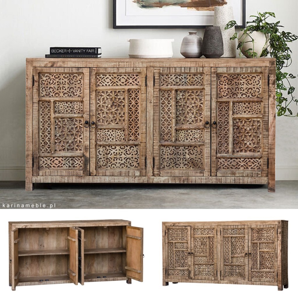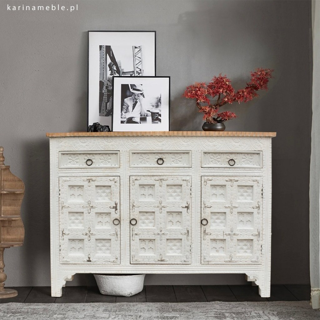 Nie obawiaj się bogatych indyjskich ornamentów! Ten styl nie zna umiaru. Prezentowana #komoda #indyjska zrobiona jest #ręcznie z litego #drewna #mango Oprócz #piękny wzorów i #naturalne #materiał jej wielkim atutem jest delikatna, jasna kolorystyka. #meble #indyjskie #drewniane #rzeźbione #orientalne #salon #sypialnia #jadalnia #gabinet #przedpokój #drewno #mebleindyjskie #mebledrewniane #meblezduszą #mebledosalonu #meblewarszawa #meblezdrewna #karinameble #ręcznierobione #drewnowdomu #wnętrzazesmakiem #wnętrza