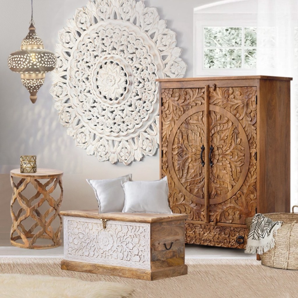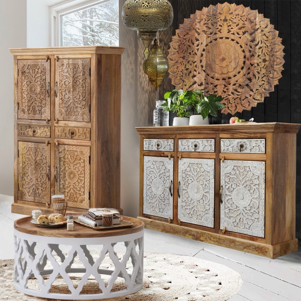 Nasze meble indyjskie z litego drewna łączą w sobie trwałość, oryginalność i funkcjonalność. Idealnie wpisują się w aranżacje w stylu boho, vintage, rustykalnym, a także nowoczesnym loftowym. Dzięki bezpośredniemu importowi możemy zaoferować atrakcyjne ceny i niepowtarzalne wzory.