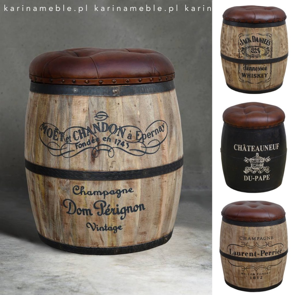 • Pufa Beczka Hendricks/Guinness ze Schowkiem – Idealny Mebel do Domowego Baru i Wnętrz Loftowych