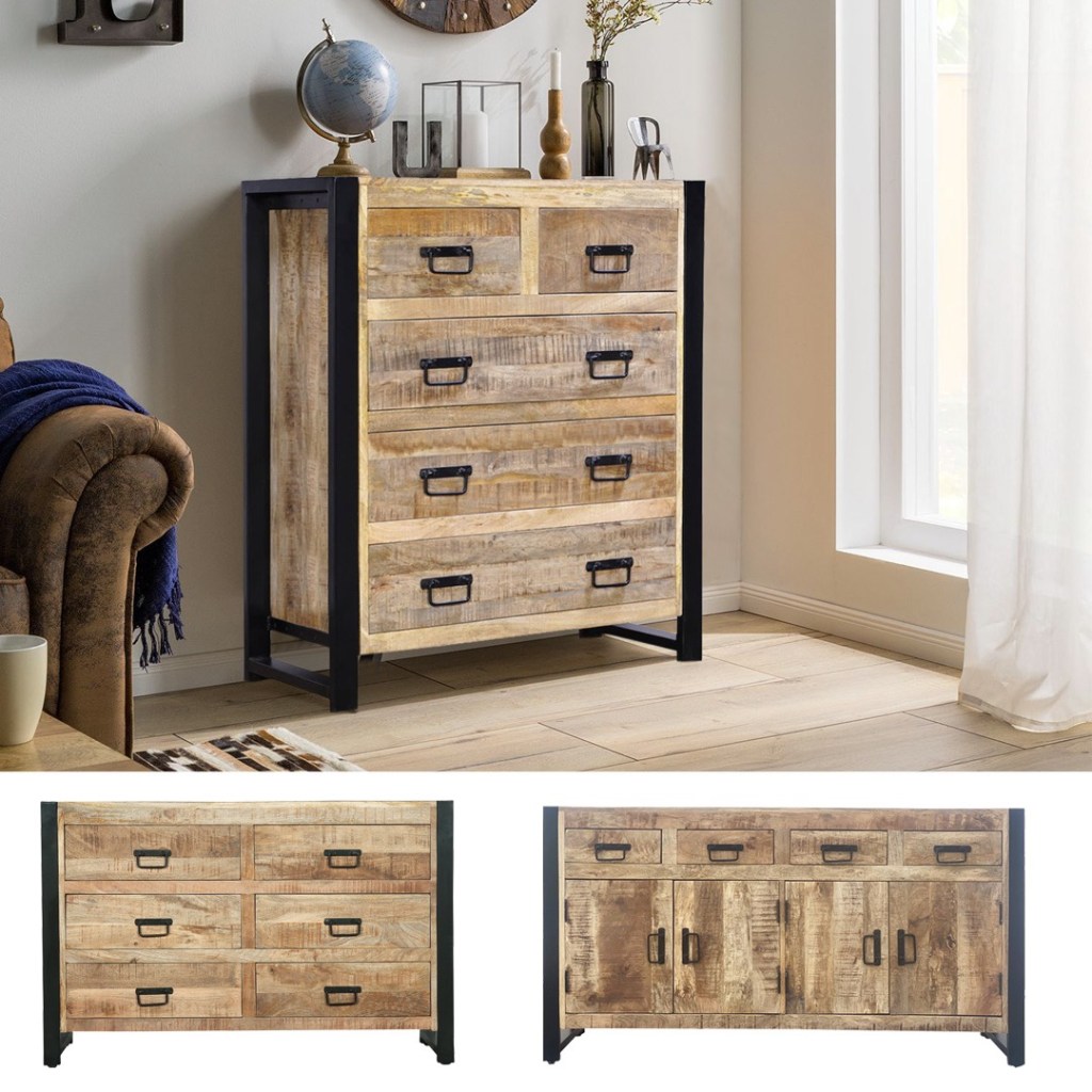 Oryginalna, #drewniana #komoda z #szuflada i #szafka zrobiona #ręcznie z #postarzane #drewna #mango Uroku dodaje jej elegancki gzyms i stylizowane, #metalowe #uchwyty #Meble pięknie zaprezentuje się w #nowoczesnewnętrze znakomicie przełamie nieco surowy, współczesny styl.