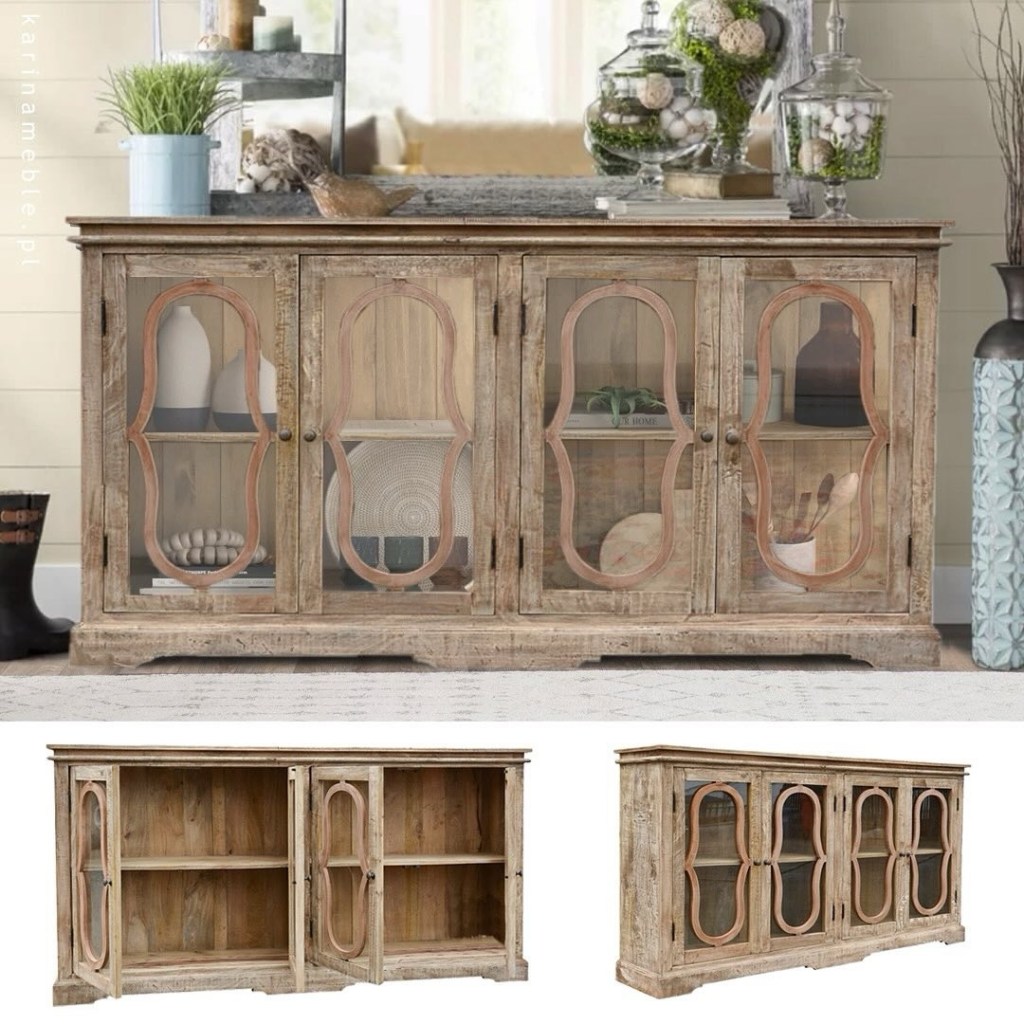 #Drewniana #komoda z przeszklonymi drzwiami „Fresca” to wyjątkowy #mebel To mieszanka #stylowe #elegancja i #rustykalne wykończenia. #Pięknie zaprezentuje się w #vintage ‚owej #jadalnia lub #salon