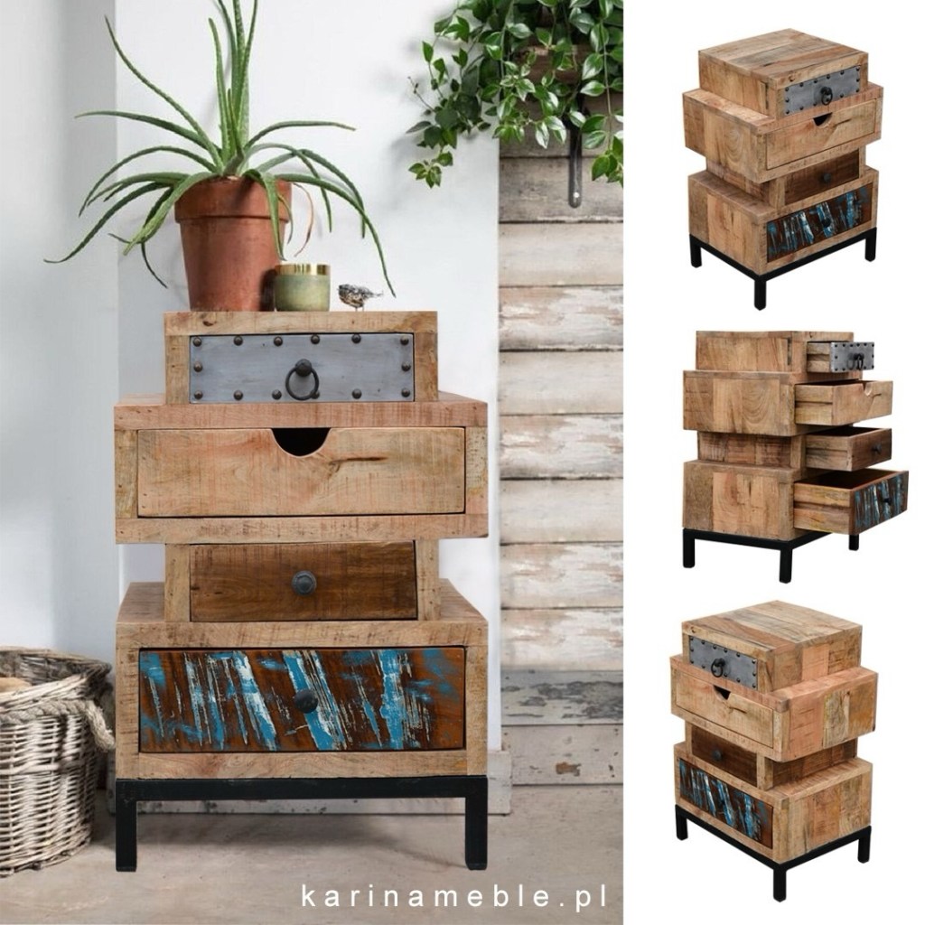👉 Zobacz online: Drewniana komoda słupek Lost in Time – styl loftowy i indyjski