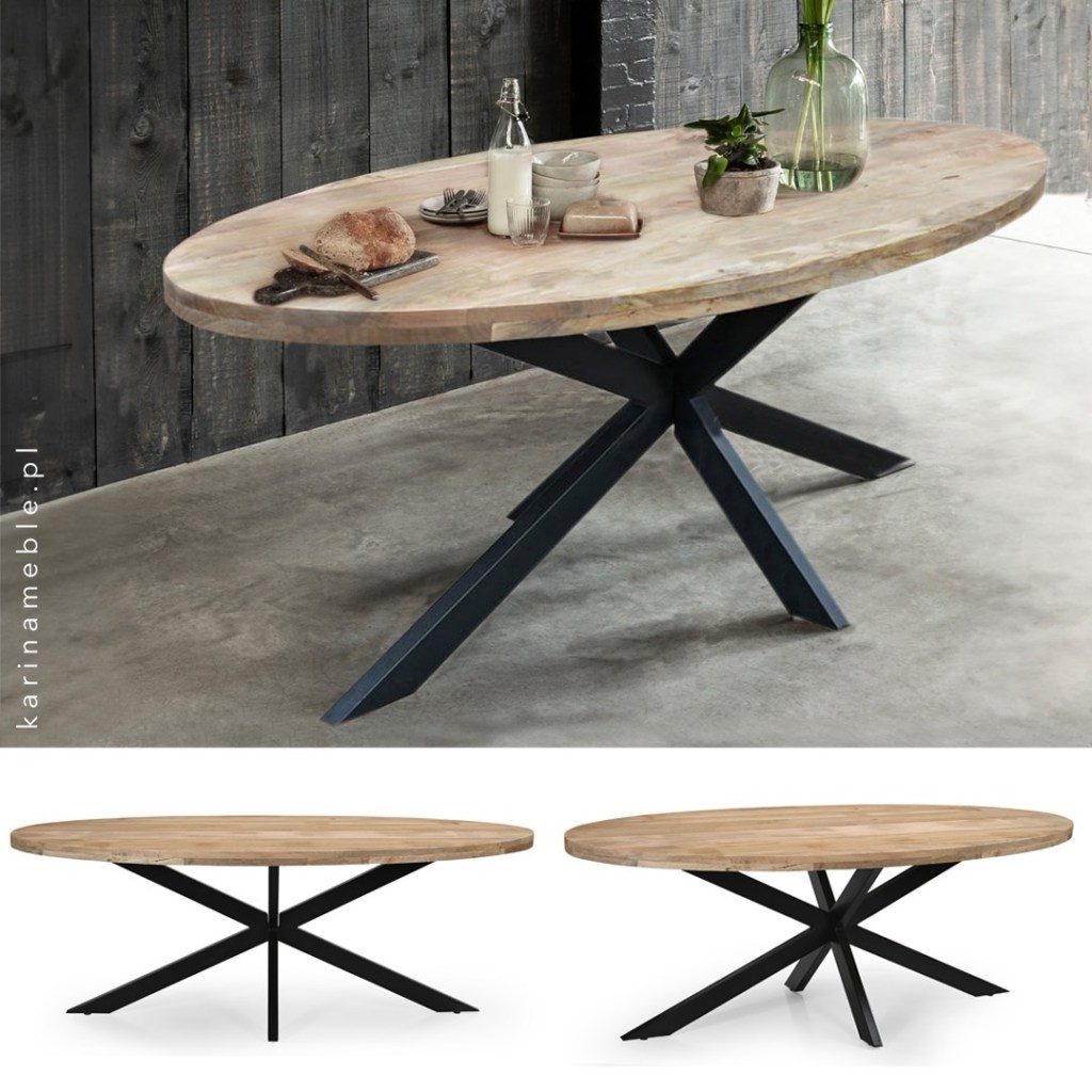 #duży #owalne #stół w stylu #loft na #metalowe nodze. Blat zrobiony jest z drewna mango w naturalnym, jasnym odcieniu. #Meble #industrialne wyglądają zjawiskowo w #nowoczesny #wnetrza to meble specyficzne dla osób lubiących niestandardowe rozwiązania.