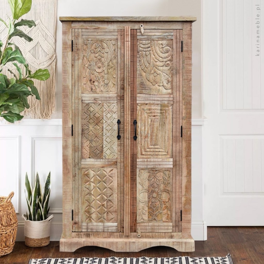 #Wysoka #komoda z #drewna #mango z rzeźbionymi drzwiami to wyjątkowy #meble w stylu #boho sprawdzi się w #salon #przedpokój lub w #sypialnia Delikatne, #rzeźbione wzory dodają jej #egzotyczne uroku. Meble wykonano #ręcznie z drewna mango.
