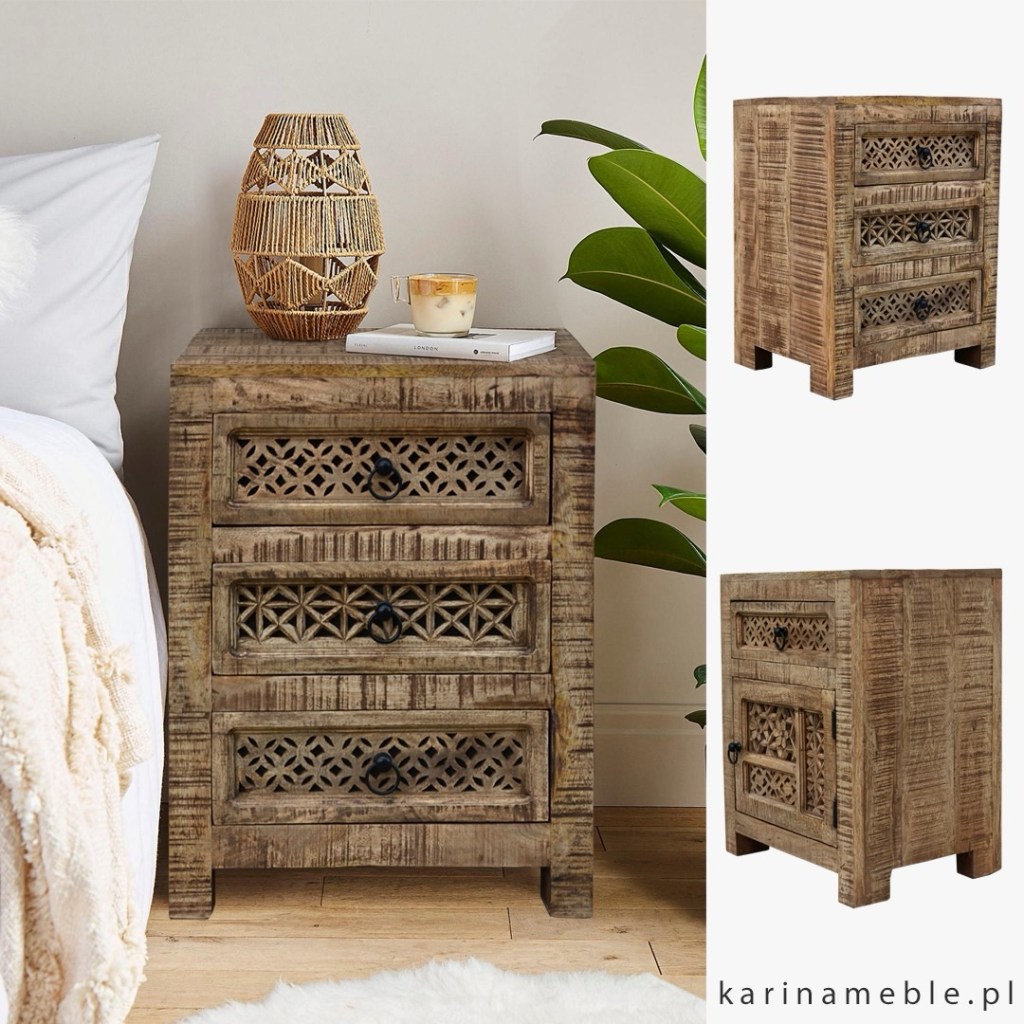 Sypialnia to nie tylko miejsce snu, ale przestrzeń, w której odpoczywamy, ładujemy energię i tworzymy nasz własny azyl. Jeśli marzysz o wnętrzu z duszą, naturalnych materiałach i rzemieślniczym charakterze, ta rzeźbiona szafka nocna z drewna mango będzie idealnym wyborem.
