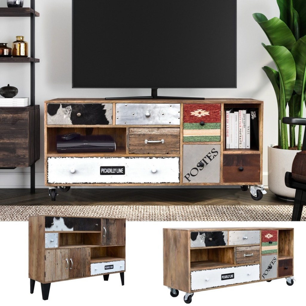• meble loftowe – kolorowa szafka rtv indyjska z drewna z recyklingu