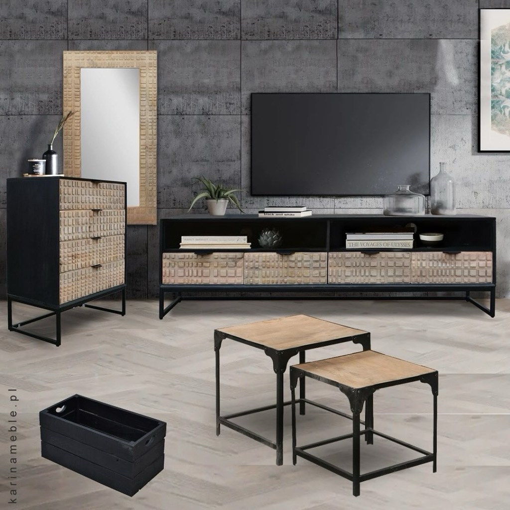 • meble loftowe – industrialna komoda z drewna mango i metalowe nogi