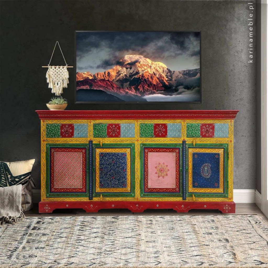 #Kolorowa #komoda #indyjska Kashmir wykonana została #ręcznie zdobiona malowanymi wzorami w stylu etno, to prawdziwa eksplozja kolorów i wzorów. Komoda będzie #ładnie wyglądała zarówno we #wnętrza w stylu #vintage jaki i w tych wypełnionych egzotycznymi meblami. #meble #indyjskie #drewniane #kolorowe #orientalne #salon #sypialnia #jadalnia #gabinet #przedpokoj #mebleindyjskie #mebledrewniane #mebledosalonu #meblezdrewna #karinameble #recznierobione #meblezduszą #wnetrzazesmakiem #meblewarszawa #drewnowdomu