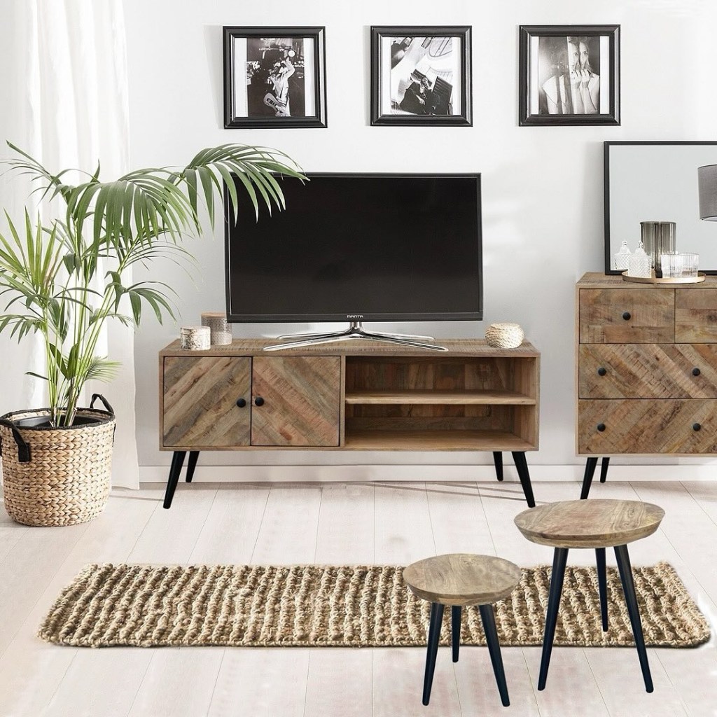 • meble loftowe – indyjska szafka rtv loftowa drewniana